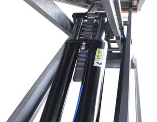 ◆整機8油缸設計,液壓同步,雙液壓系統(tǒng)、液壓鎖和機械三重保險裝置,下降自動解鎖。